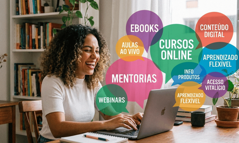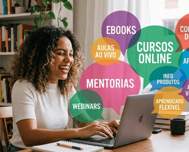 Criação da estratégia, canais de atração e lançamento de produtos digitais.